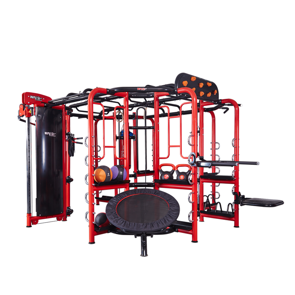 • 功能 可最少提供15人同时练习,20种以上的练习方式,以下只列出一些常用的练习项目:弹力球运动、双杆、甩绳、单杆引体向上、拉力练习、二头肌运动、深蹲训练、平拉训练、沙袋拳击、踏板运动、吊绳、单边举重杆、攀岩训练、天梯攀爬、敏捷梯、吊环、壶铃等